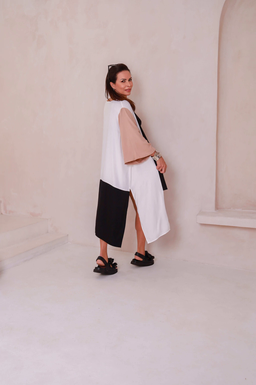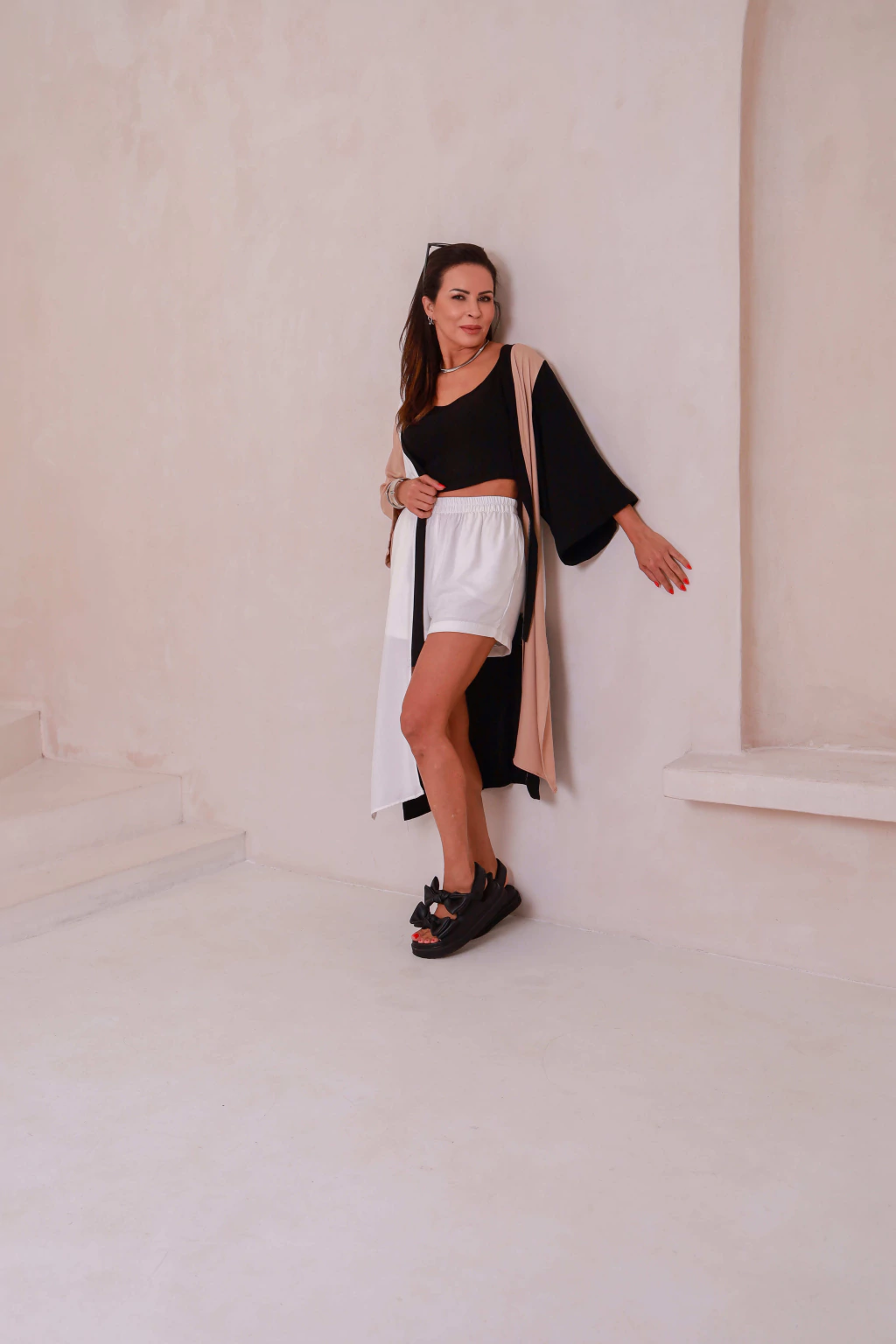 Cheio de estilo e versatilidade, esse kimono é confeccionado em viscose sarjada, garantindo leveza e ótimo caimento. O modelo possui mangas amplas 7/8 e recortes em três cores modernas (preto, bege e off-white), que trazem sofisticação e elegância ao visual.